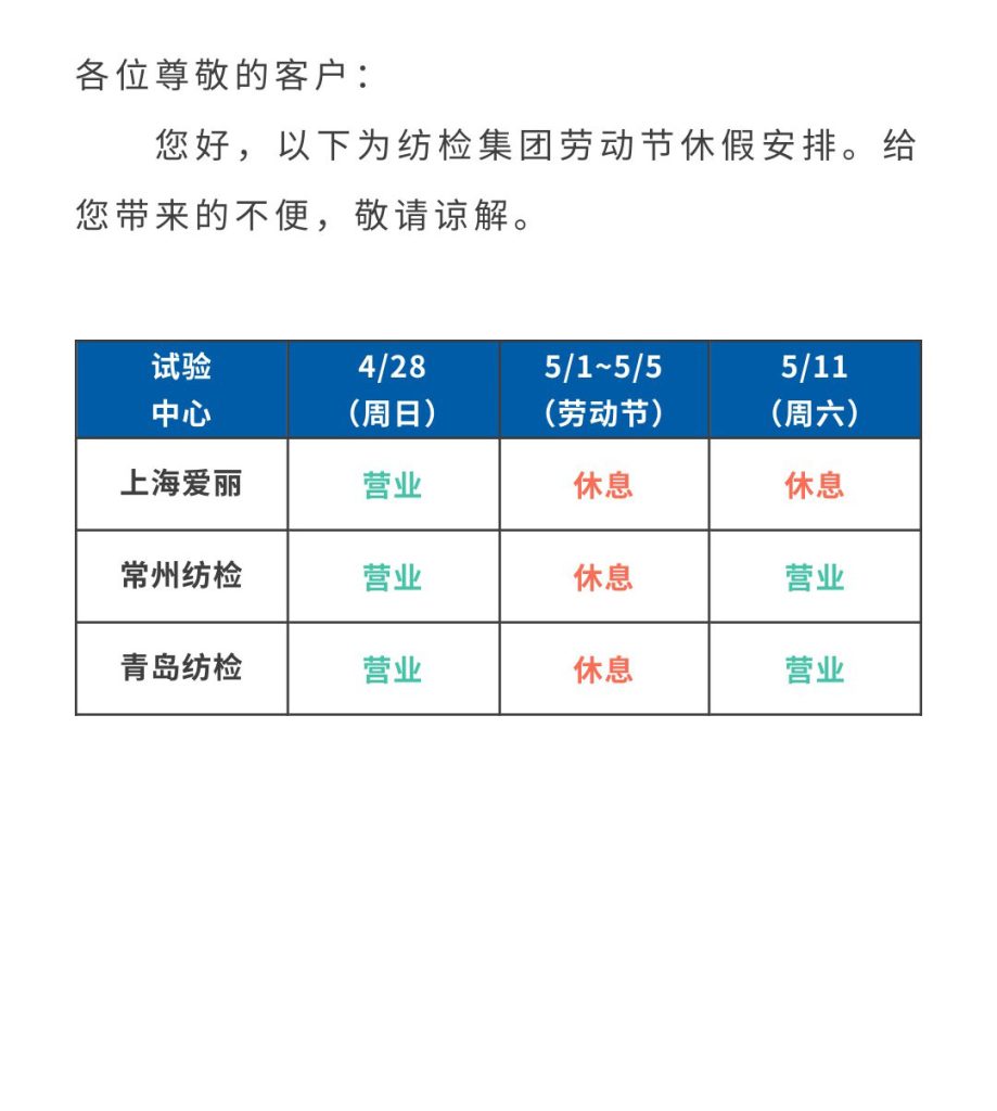 ]]>| 試驗(yàn)中心 | 2025/4/27 (周日) | 5/1~5/5 (勞動(dòng)節(jié)) |